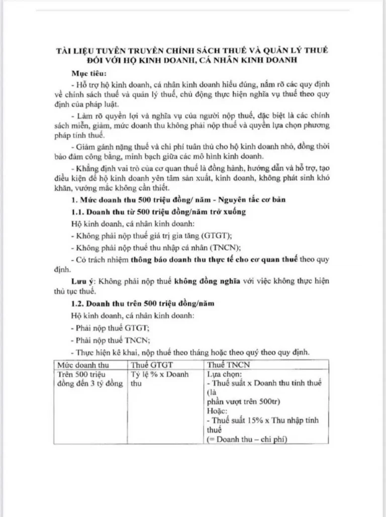 CHÍNH THỨC: CÔNG BỐ TÀI LIỆU TUYÊN TRUYỀN CHÍNH SÁCH THUẾ MỚI DÀNH CHO HỘ KINH...