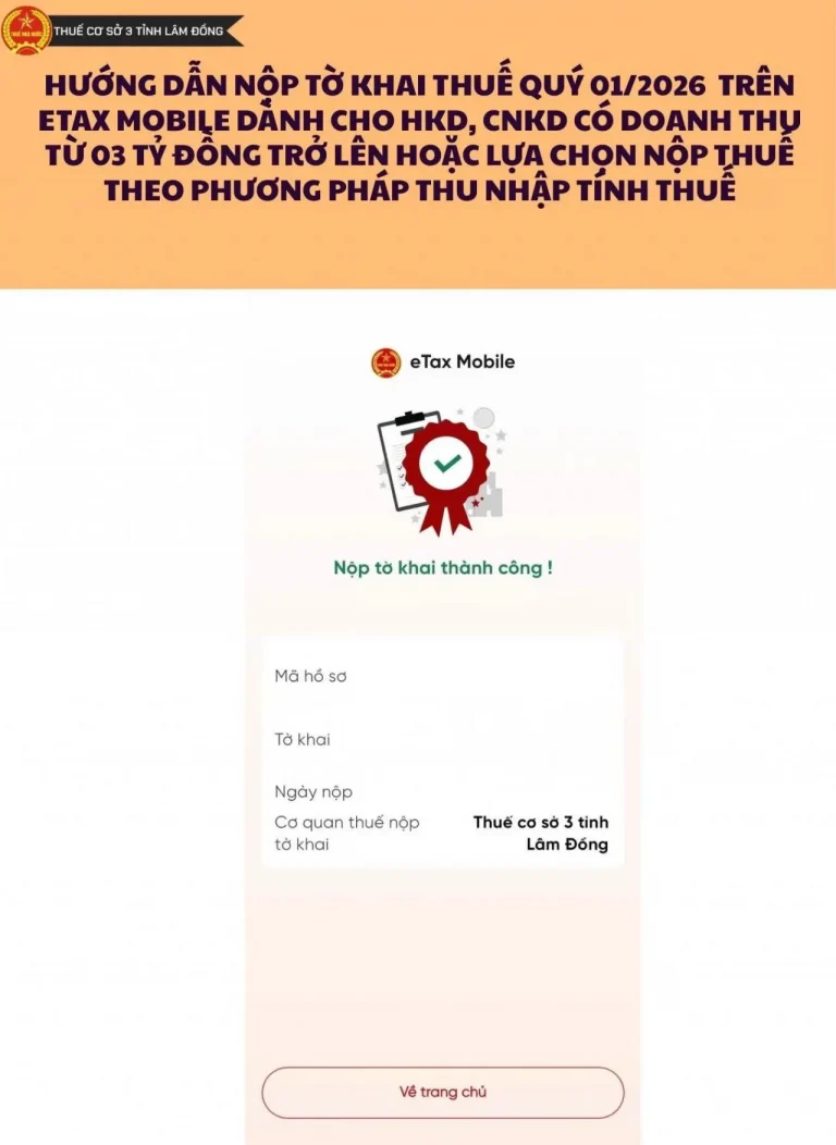 Hướng Dẫn Nộp Tờ Khai Thuế Quý 1/2026 Trên eTax Mobile Cho Hộ Kinh Doanh Doanh...