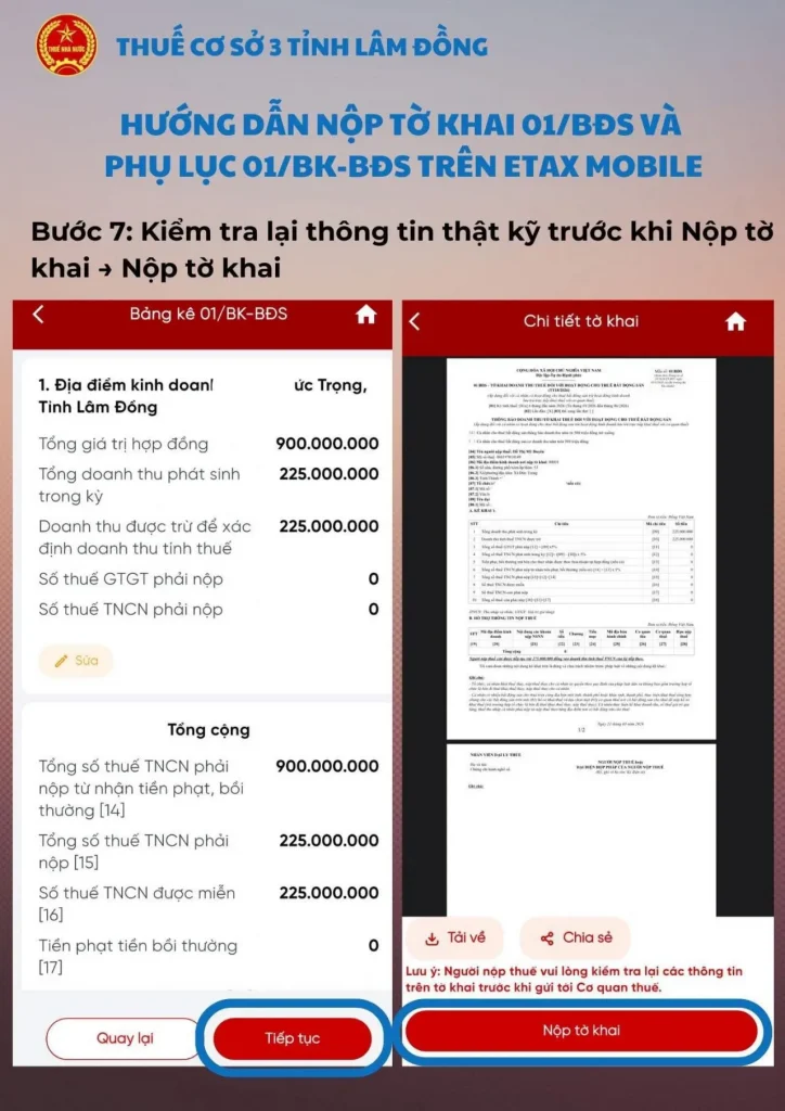 Sau khi điền đầy đủ và kiểm tra các chỉ tiêu, chọn Tiếp tục.